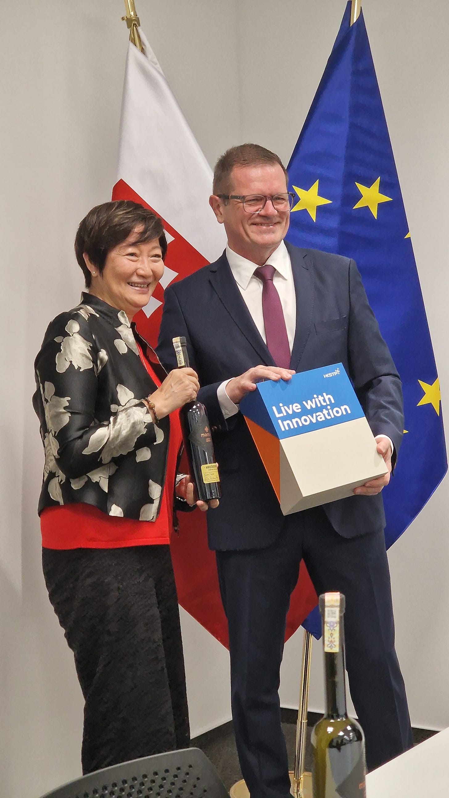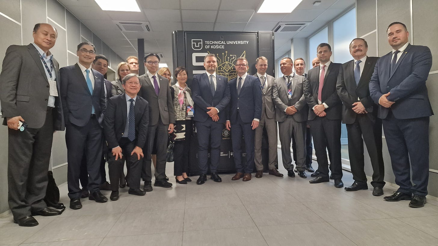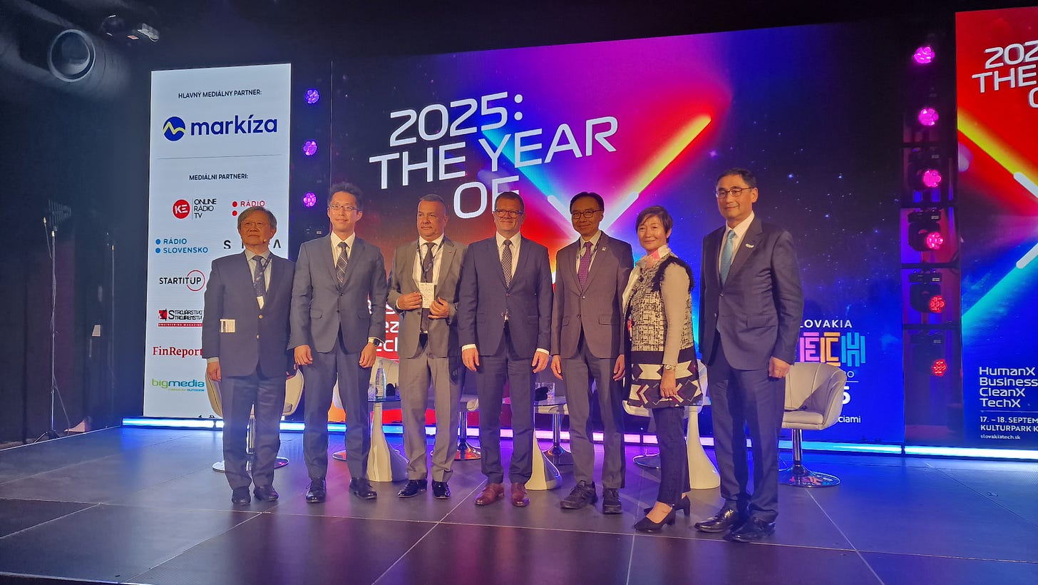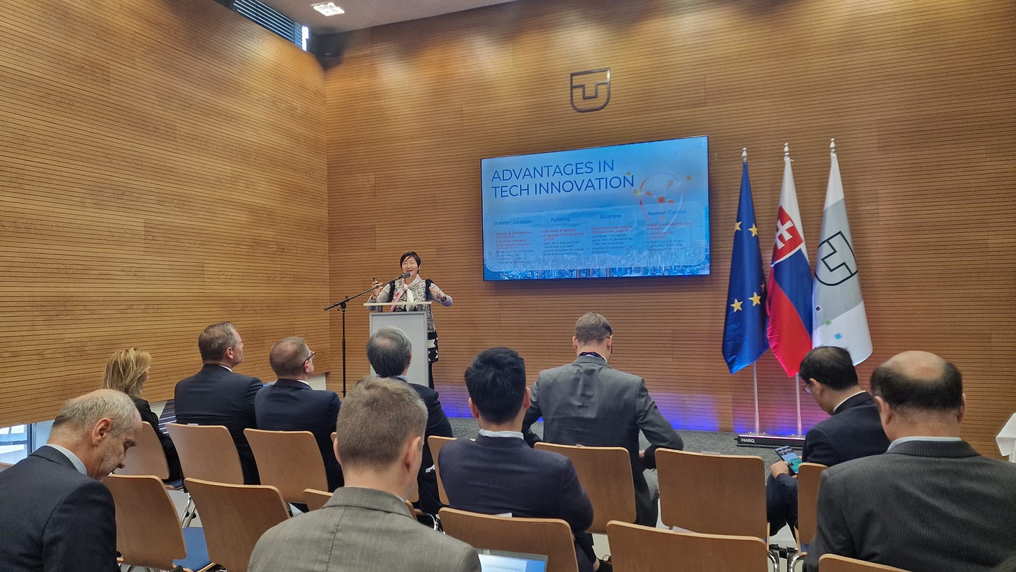 事實上,這次促成香港創科界組團 - 除我作為科學園的代表外,香港應用科技研究院(ASTRI)主席李惠光工程師(Ir Sunny Lee)及香港生產力局總裁畢文堅先生(Mohamed D. Butt, MH) - 出席斯洛伐克科技論壇,源起其實是4月下旬斯洛伐克副總理科麥茨(Peter Kmec)訪港,並對香港的創科生態表示相當讚賞,因此希望兩地能在創科及數碼轉型有更深入的合作。因此,除了在4月時斯洛伐克及香港政府簽訂《科學、研究與創新合作備忘錄》外,這次訪問斯洛伐克也促成了香港應用科技研究院及香港生產力局,分別與斯洛伐克科學院(SAS)及斯洛伐克國家創新與技術中心(NITC)簽訂合作備忘錄。